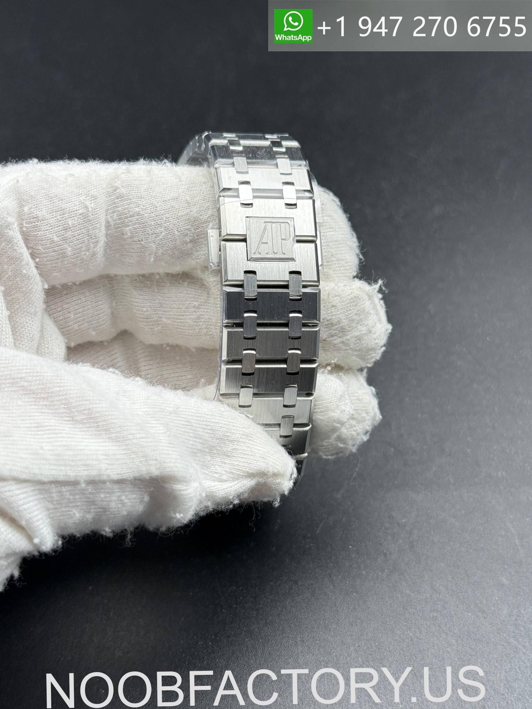 Each detail, from the subtle engravings to the alignment of the laser markings, is crafted to ensure this replica stands parallel in quality and aesthetics to the original Audemars Piguet. The APS Factory’s commitment to excellence is evident in every component, making this timepiece not only a stunning accessory but also a marvel of modern horology.