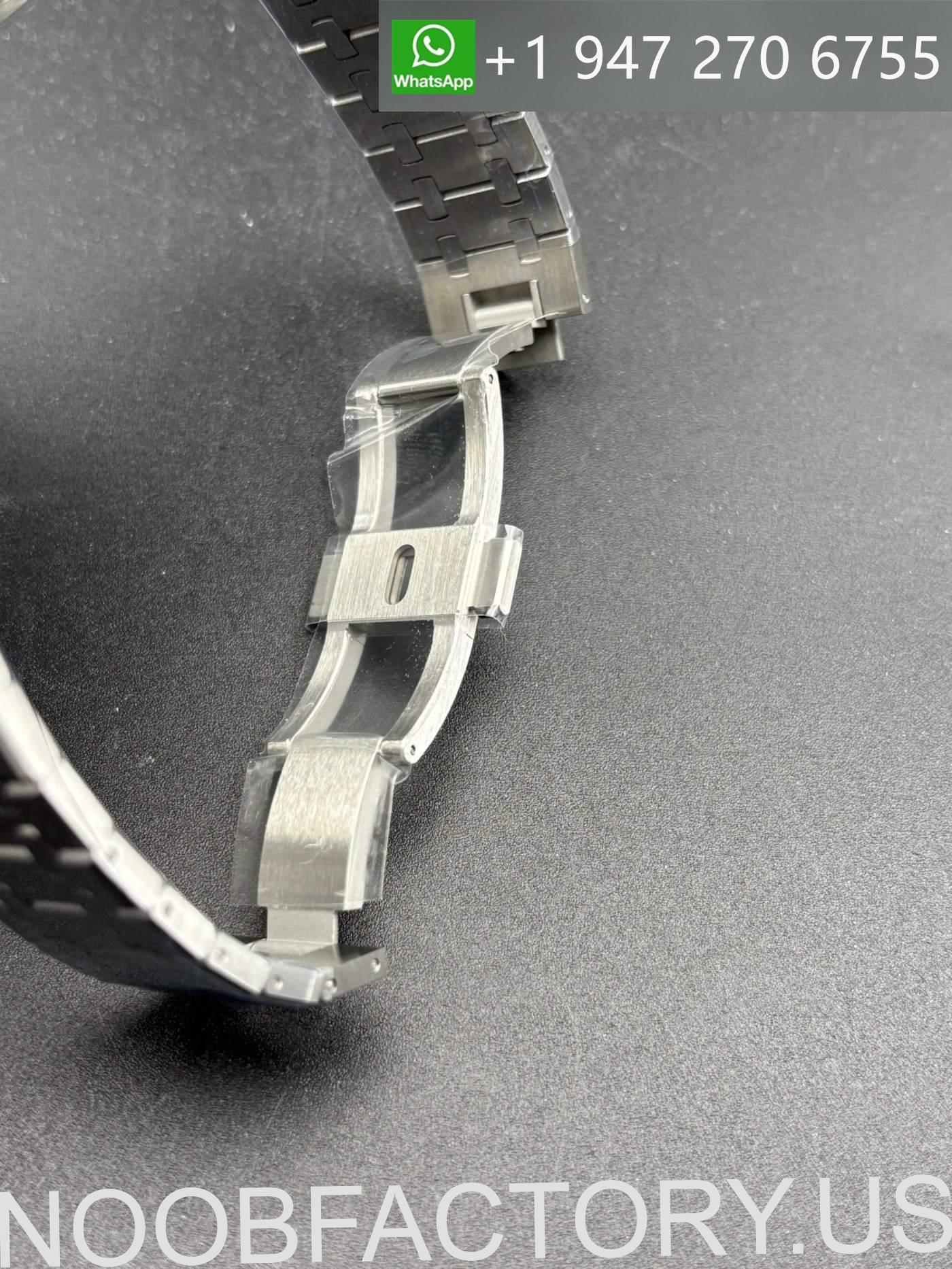 Each detail, from the subtle engravings to the alignment of the laser markings, is crafted to ensure this replica stands parallel in quality and aesthetics to the original Audemars Piguet. The om Factory’s commitment to excellence is evident in every component, making this timepiece not only a stunning accessory but also a marvel of modern horology.