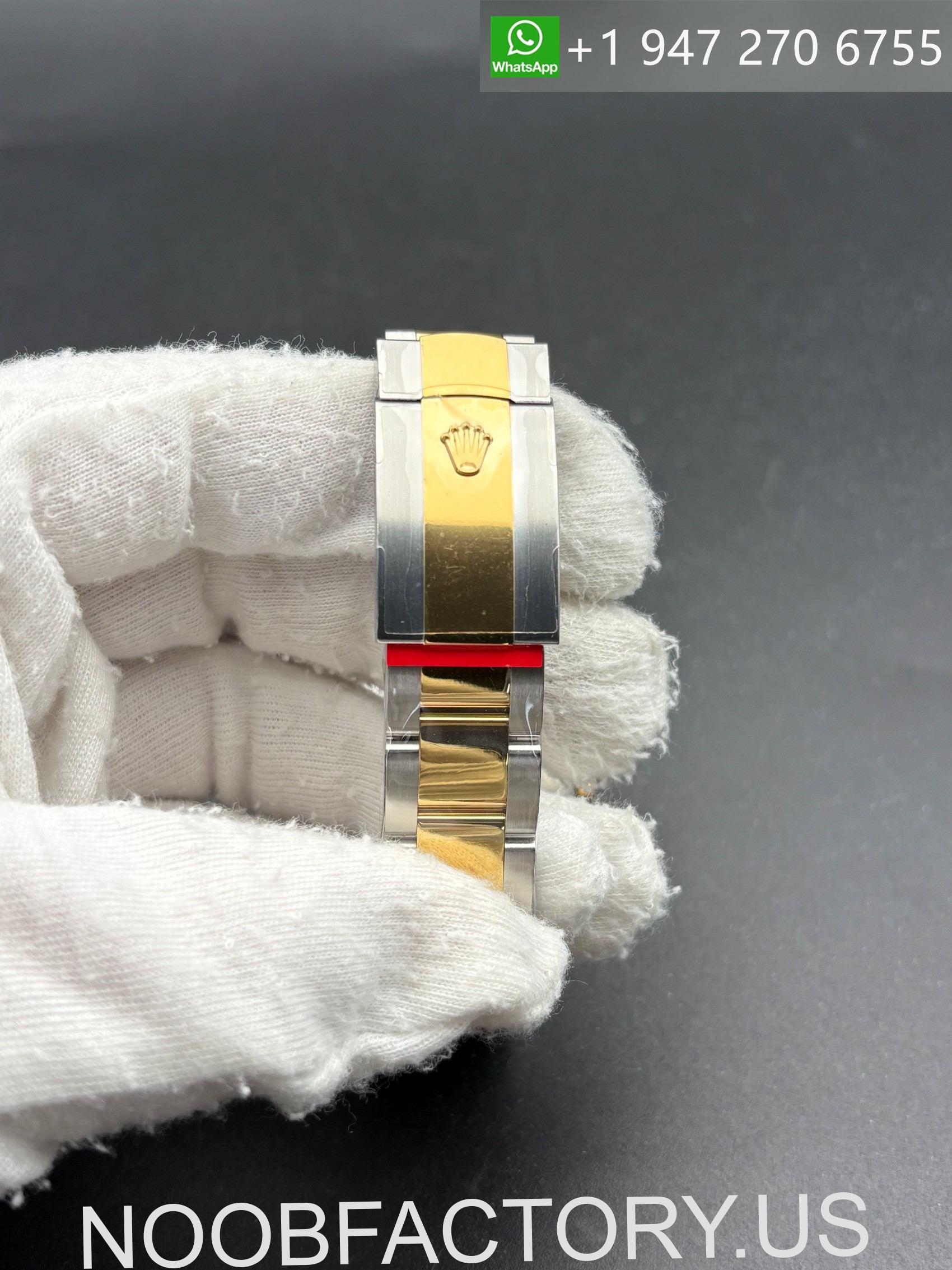 – **Bracelet**: The Oyster bracelet features flat three-piece links made of solid 904L stainless steel with a DLC scratch-protection coating,the middle part is 18k gold plated.It includes a folding OysterLock safety clasp with the Easylink 5 mm comfort extension system, mirroring the original design.