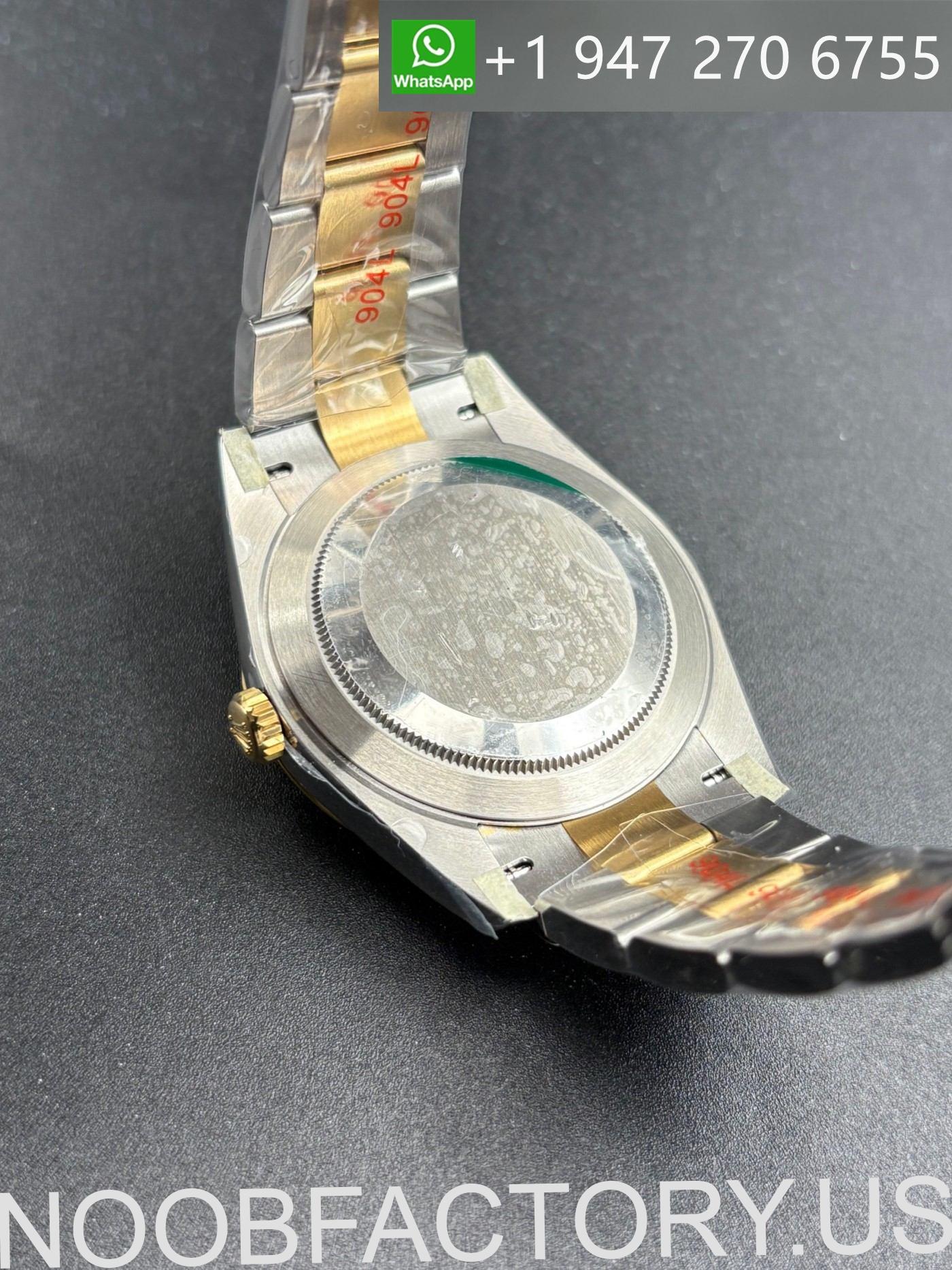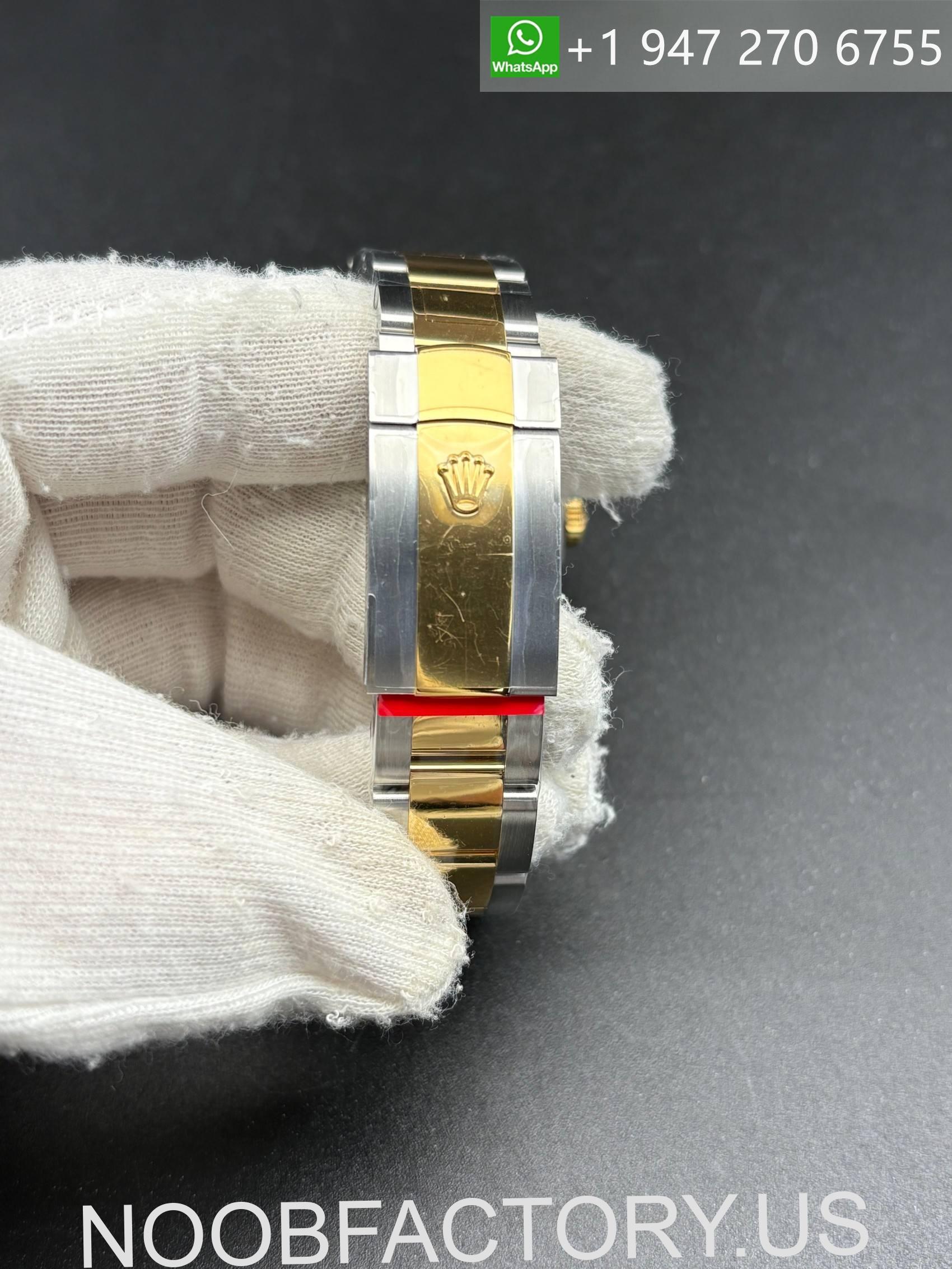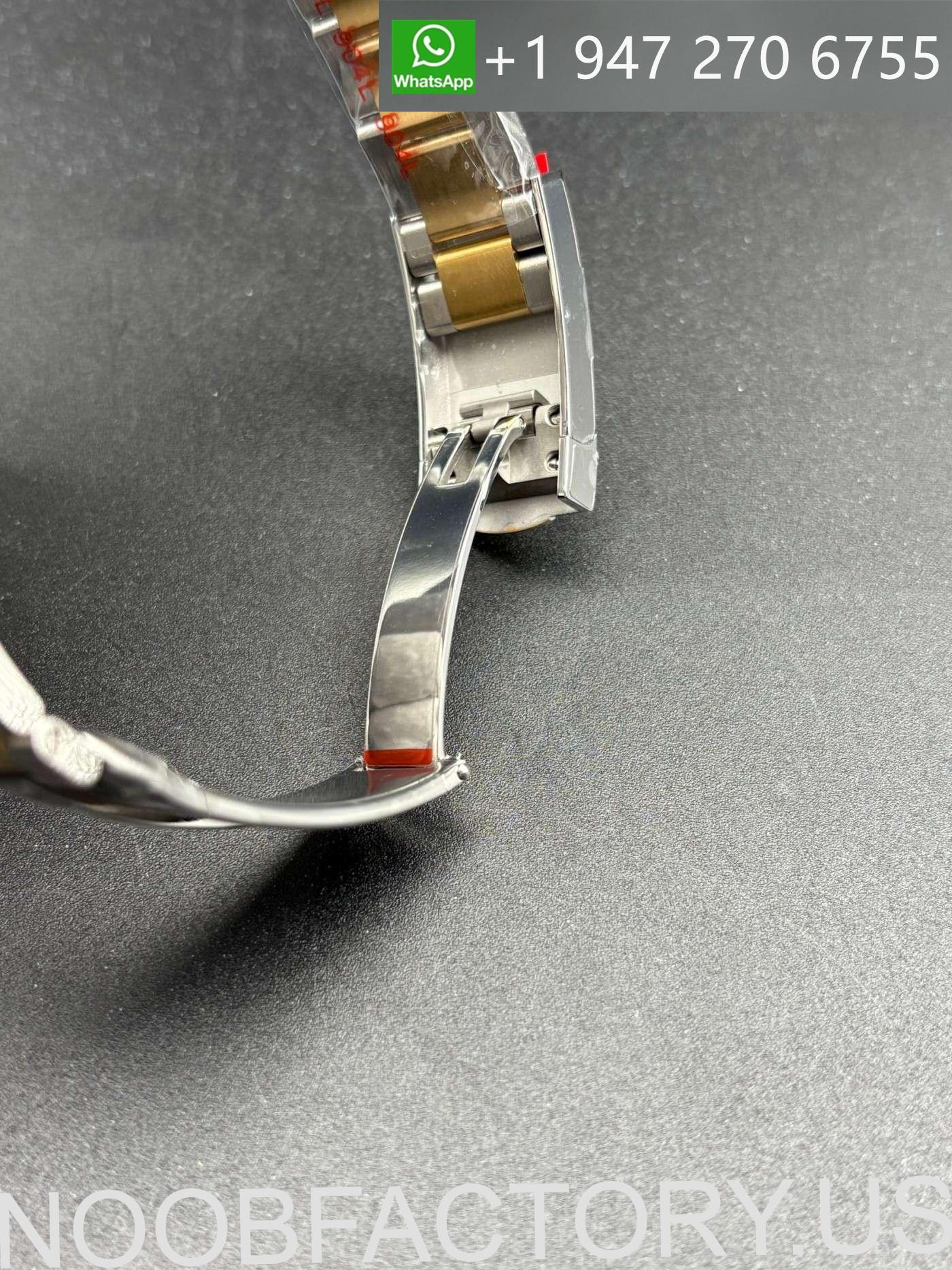 – **Bracelet**: The Oyster bracelet features flat three-piece links made of solid 904L stainless steel with a DLC scratch-protection coating,the middle part is 18k gold plated.It includes a folding OysterLock safety clasp with the Easylink 5 mm comfort extension system, mirroring the original design.