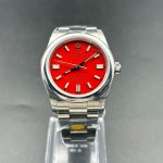 – **Dial**: The watch features a pitaya red dial with baton-style hour markers filled with Chromalight luminescent material, ensuring excellent readability even in the dark. The clean three-hand layout highlights the purity of the Oyster Perpetual collection, making it suitable for both casual and formal wear.