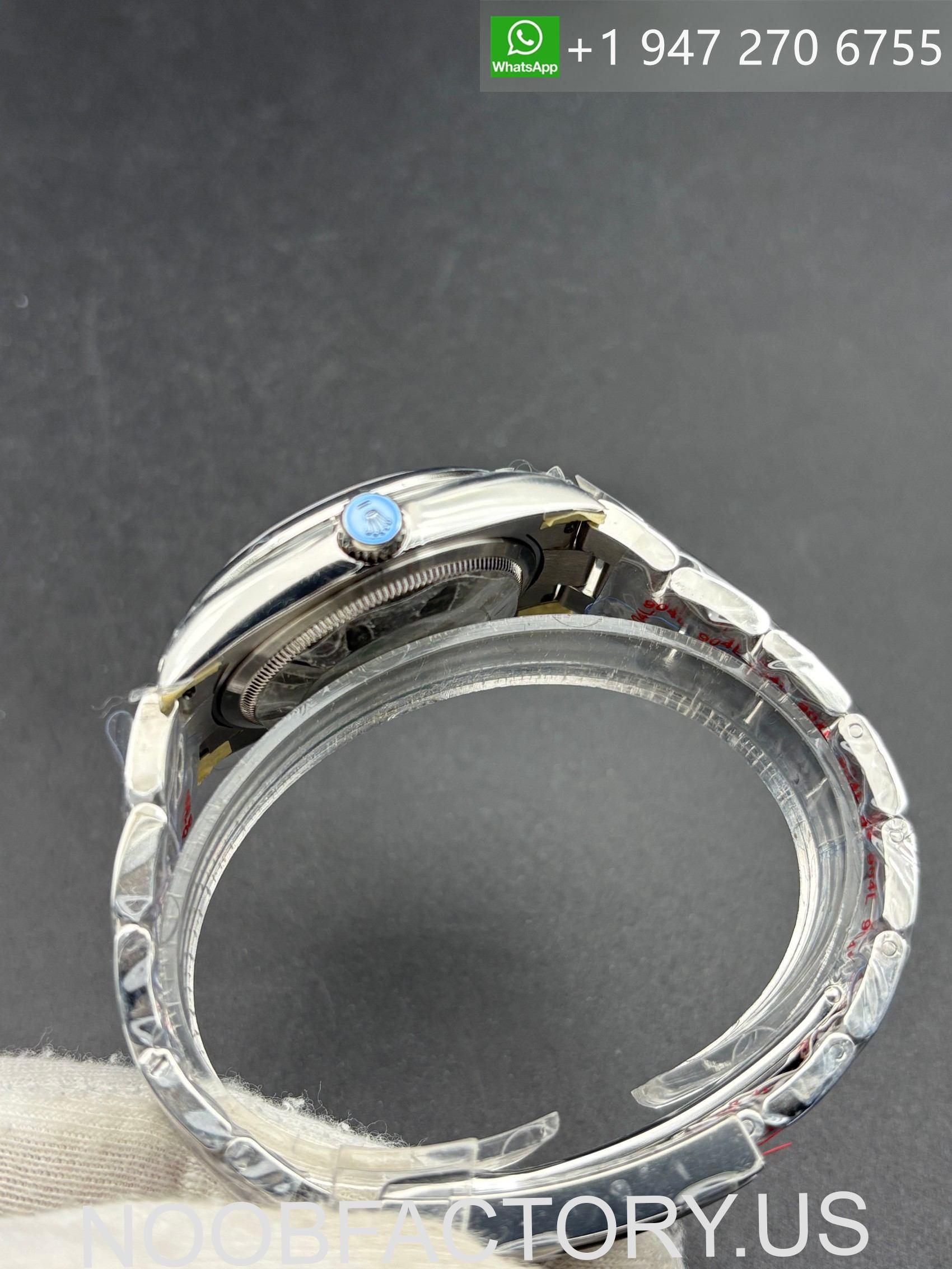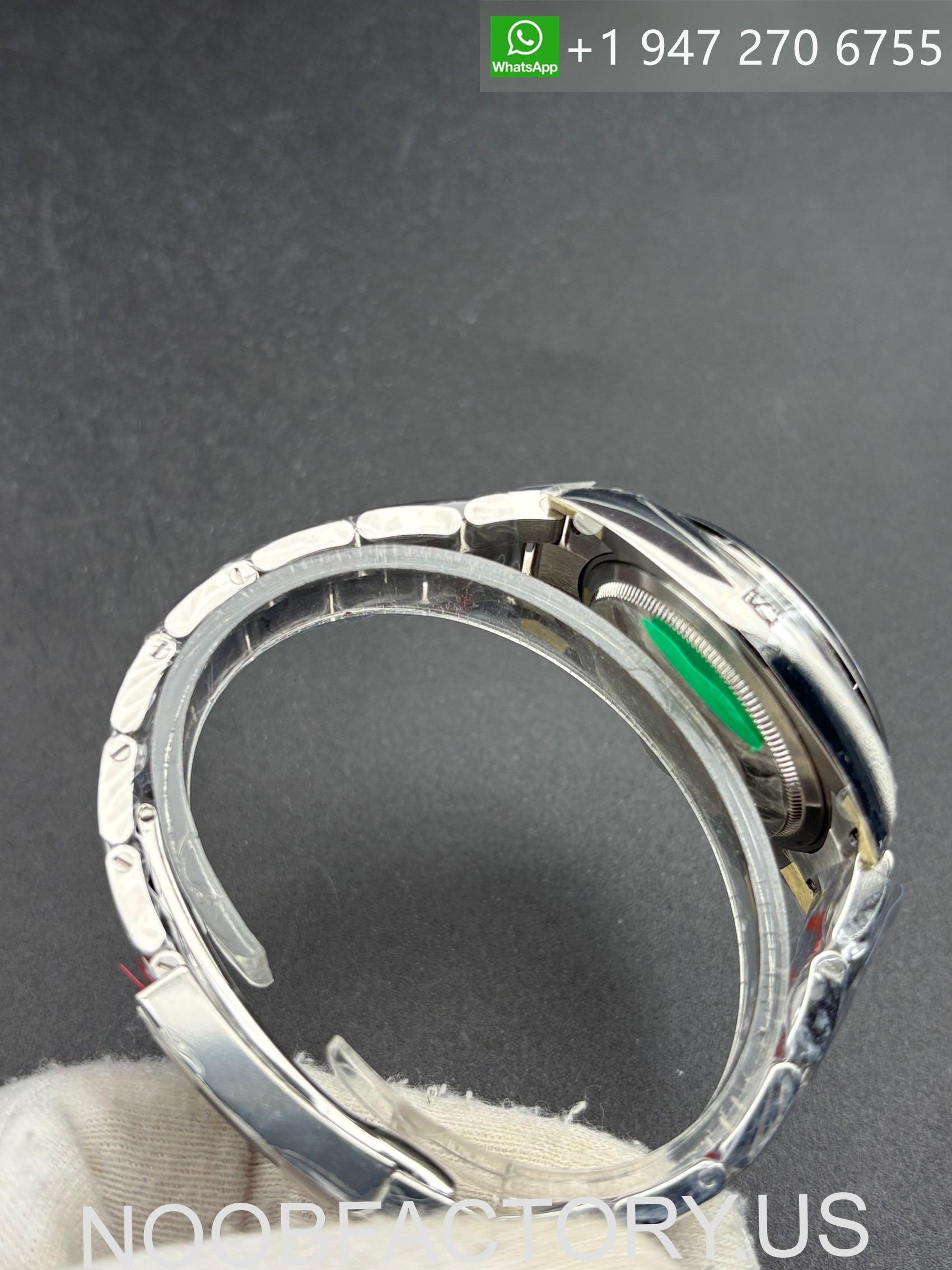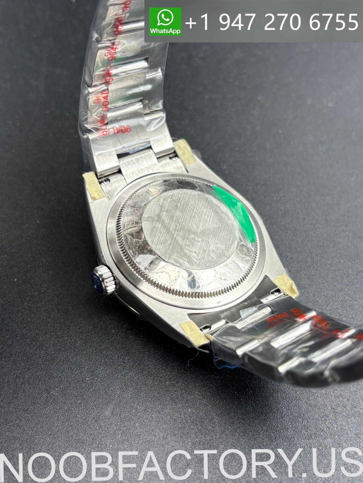 Each detail, from the subtle engravings to the alignment of the laser markings, is crafted to ensure this replica stands parallel in quality and aesthetics to the original Rolex Oyster Perpetual. The NOOB Factory’s commitment to excellence is evident in every component, making this timepiece not only a stunning accessory but also a marvel of modern horology.