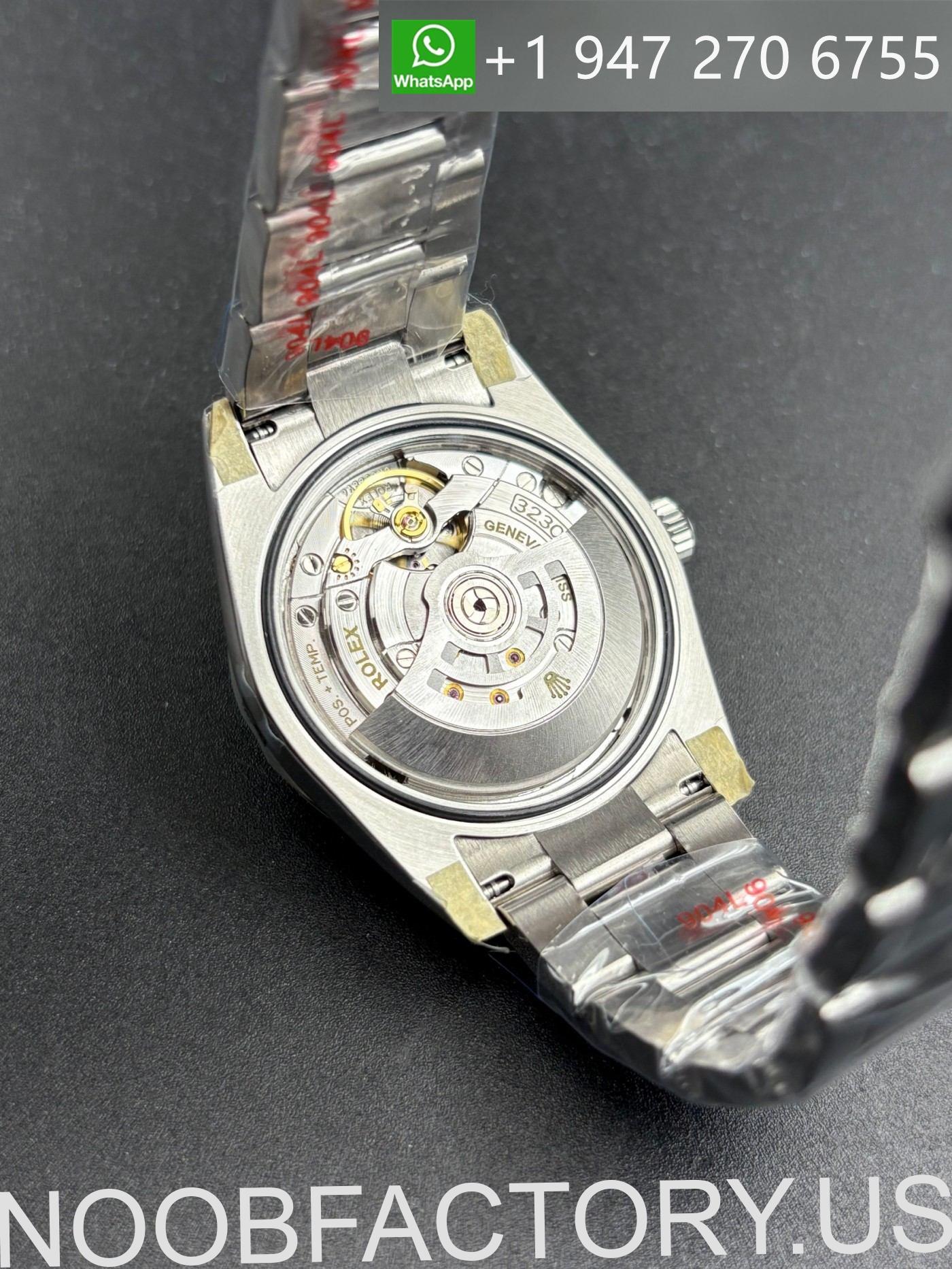 – **Movement**:The Noob factory’s Rolex 3230 movement is an impressive high-quality replica movement, widely praised for its exquisite craftsmanship and outstanding performance. It closely resembles the original in appearance, capturing the classic style of Rolex. The movement offers up to 40 hours of power reserve, ensuring that the watch maintains excellent performance even when not worn.