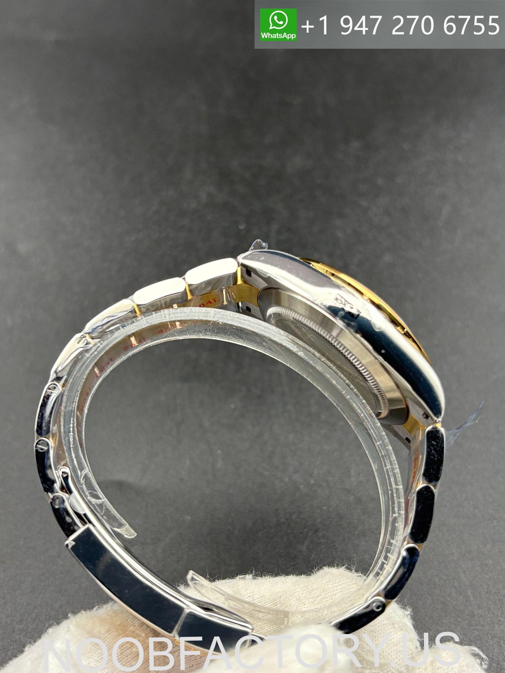 – **Bracelet**: Two-tone Oyster bracelet constructed from solid 904L stainless steel with gold wrapped center links. The bracelet offers a solid feel, smooth articulation, and secure folding clasp, ensuring comfort during extended wear.
