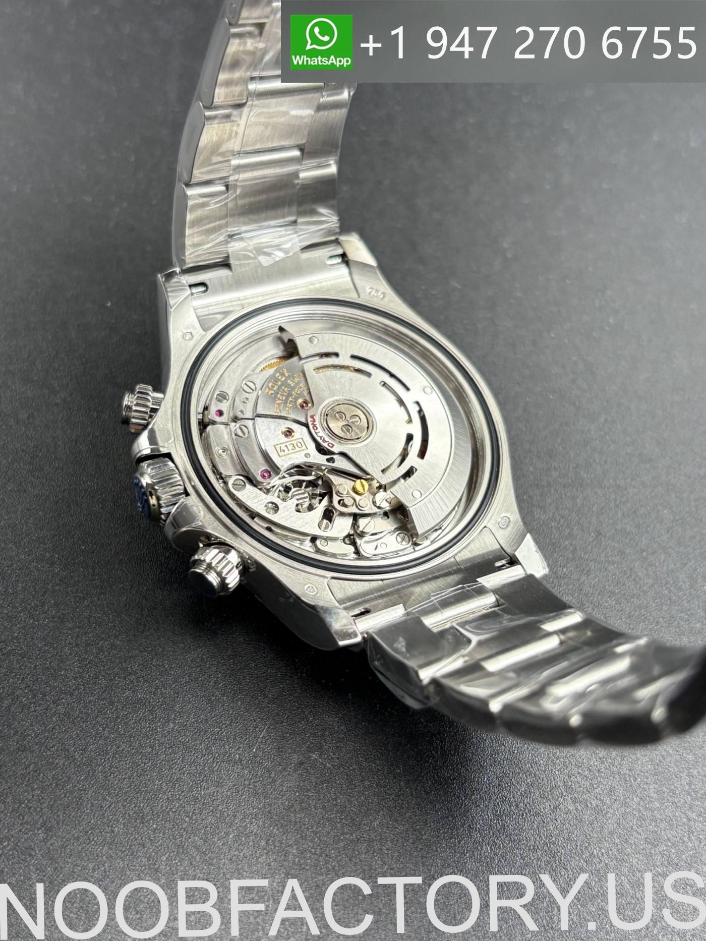 – **Movement**: The Rolex Calibre 4130 Chronograph Super Clone Automatic Swiss Movement, achieving an exact 1:1 ratio with all functionalities, including a smooth sweeping seconds hand at 28,800 VPH (4Hz). Features include bidirectional self-winding via a perpetual rotor, nano-oil lubrication for noise reduction, and shock-resistant housing.The movement offers a substantial power reserve approximately 36 to 48 hours.